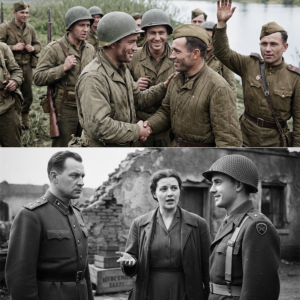 They approached the edge where a narrow plank had been laid across part of the ruined bridge. The air smelled of damp wood and smoke. On the opposite side, Soviet soldiers waited, their uniforms muddier, their faces harder—but their eyes bright with the same stunned disbelief.