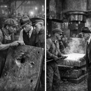 Frank signaled. The crane began to move the plate toward the quench pit. The pit’s surface churned with dark liquid—oil, prepared to swallow the glowing metal and steal its heat fast enough to harden the face.