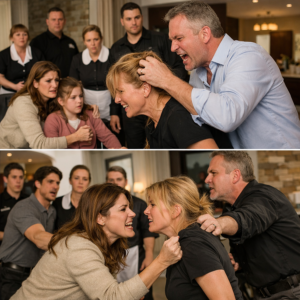 She didn’t swing wildly. She struck with precision—an elbow to Grant’s chest, a twist that took his balance, a shove that sent him into the banister with a hard crack.