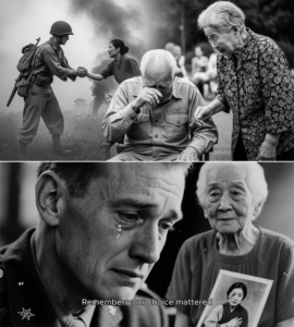 Word spread quickly through the town hall. People who had been chatting and eating cake fell silent when they saw Aiko standing beside Frank, their hands clasped briefly—an ocean and sixty years condensed into a single, fragile gesture.