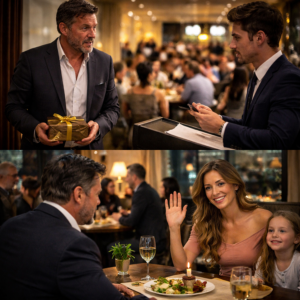 Behind him, laughter floated from the main dining room—someone celebrating something with friends. Plates clinked. A camera flash winked near the bar. A waiter glided by holding a tray like it weighed nothing.