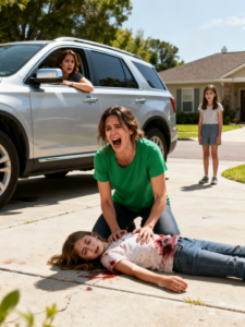 Rosie yanked her hand back and collapsed onto the driveway, clutching it to her chest, face turning instantly blotchy with pain. She was sobbing so hard she couldn’t catch air.
