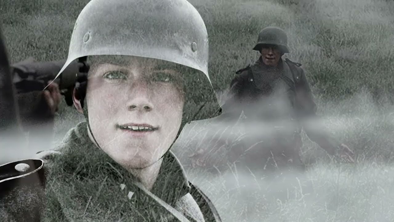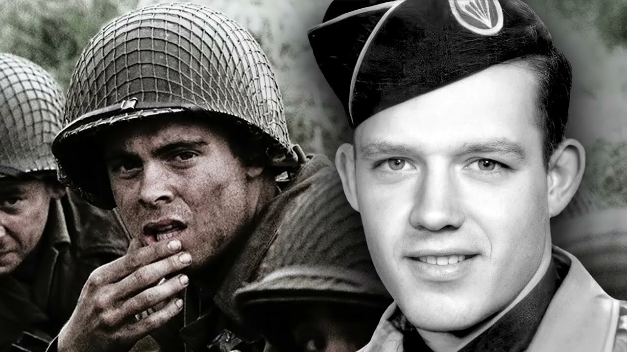 Winter said that he tripped once or twice, too, but continued running. Upon reaching the road in the series, Winters immediately notices a young German sentry who is kneeling about 25 ft away in a field on the other side of the road. They lock eyes and Winters momentarily hesitates to fire his rifle. The young German who looks to be a teenager starts to smile at Winters.