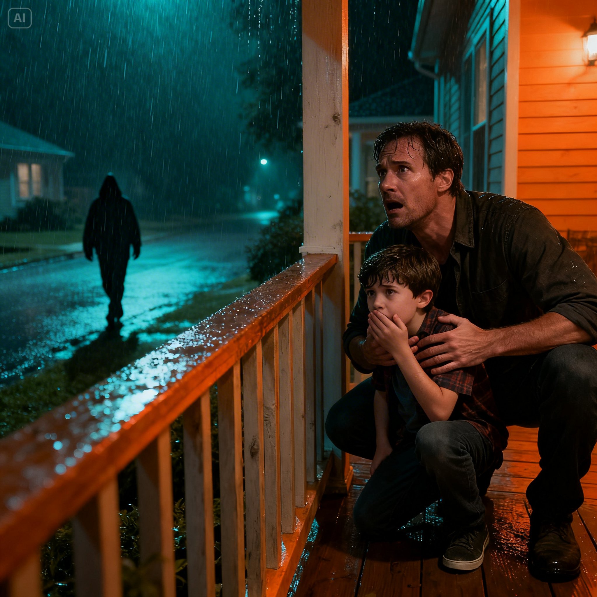 I froze on the last step, barefoot on cold hardwood, my heart pounding so hard I felt like the sound alone could wake the whole house